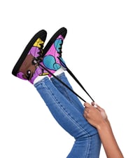 High top faux leather shoes that are colorful and cute that can max any maximalist cartoon loving girlie’s outfit